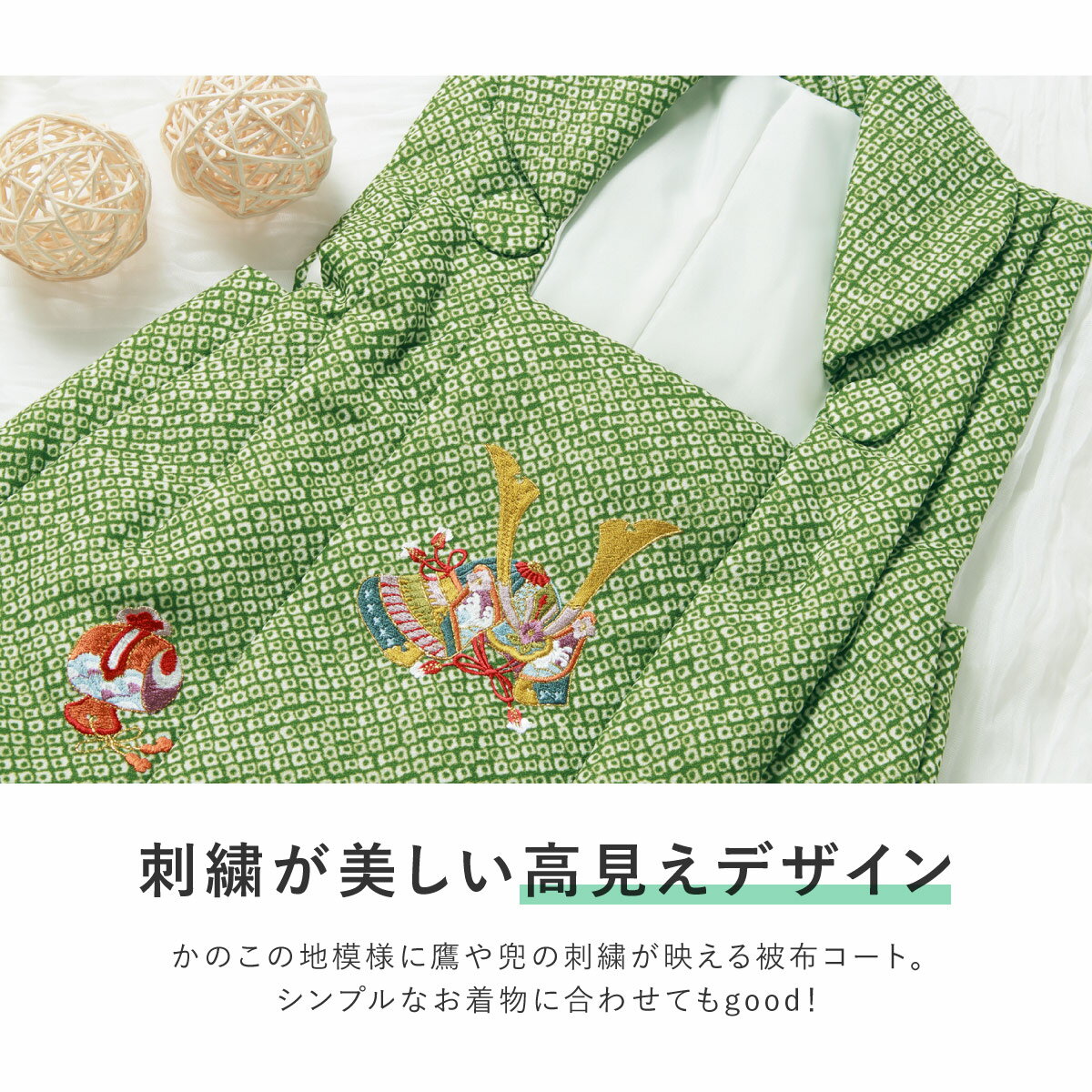 【20%OFF】★先着クーポン100名限定☆Black Friday限定 七五三 被布コート 着物 三歳 三才 男の子 和装 被布 単品 緑 青 灰 黄 黒 ブルー グレー ブラック 刺繍 鹿の子 地模様 兜 鷹 宝尽くし 古典 レトロ モダン おしゃれ 購入 753 送料無料