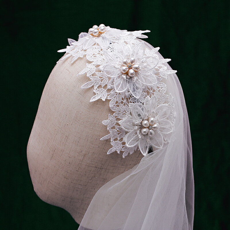 即納 カチューシャ ウエディングベール パール フラワー ウェディングベール 昭和 ブライダルベール 白 オフホワイト レトロ エレガンス ショートベール ミドルベール ミディアムベール マンティラウェディング 花嫁 二次会 結婚式 前撮り ビンテージ風