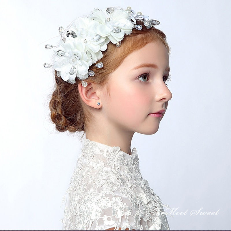 ヘッドドレス 子供 ヘアアクセサリー 髪飾り 女の子 キッズ 花 ホワイト フラワー ティアラ カチューシャ ヘアバンド 発表会 ピアノ演奏会 結婚式 和装 七五三