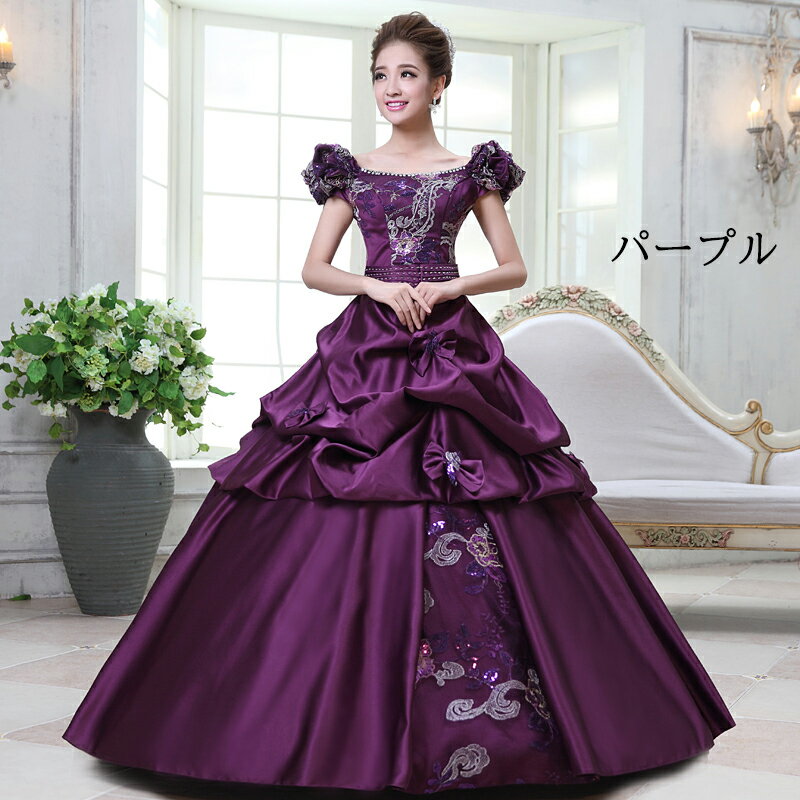 カラードレス ワインレッド パープル 半袖 ロングドレス ウェディングドレス ウエディングドレス 結婚式 二次会 披露宴 花嫁 演奏会 発表会 レトロ プロムドレス パーティードレス コンサート タッキン ブライダル イブニングドレス ステージドレス 大人 大きいサイズ