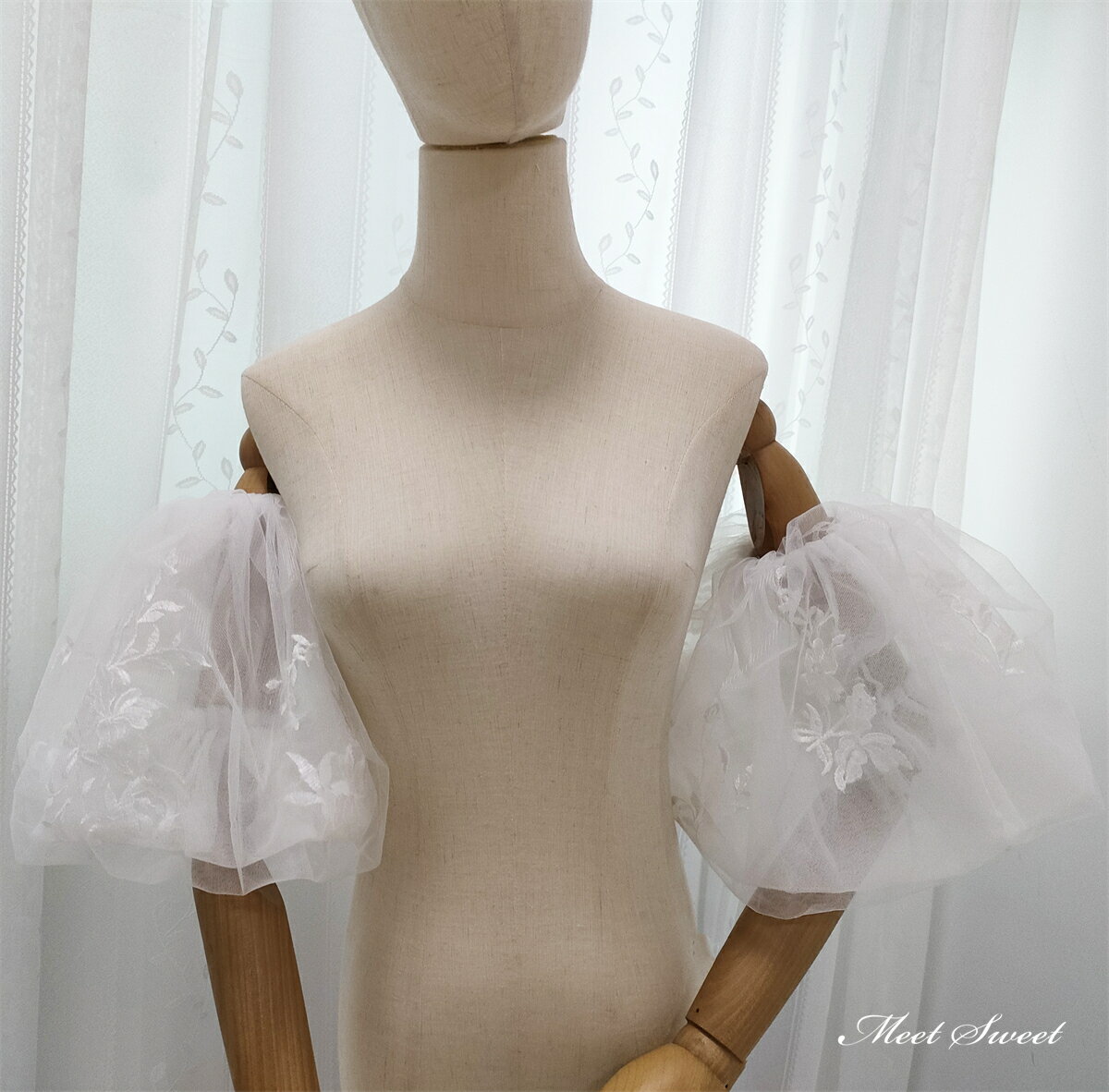 【P5倍★BLACK FRIDAY限定】即納 セミオーダー可能 取り外し袖 付け袖 パフスリーブ オフホワイト チュール レース 結婚式 花嫁 ブライダル 二次会 披露宴 パーティー ウェディングアレンジ お色直し かわいい ウェディングドレスアレンジ ウエディングドレスアレンジ