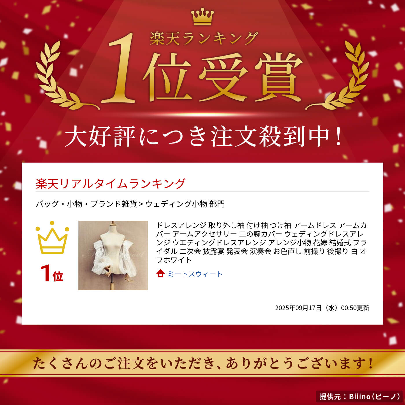 【重要なお知らせ】 平素より「ミートスウィート」をご愛顧いただき、誠にありがとうございます。 このたび、当店の商品画像(当店ロゴ入り)を無断で使用した他店舗の類似商品が流通していることが確認されました。 ★★当店の商品画像(ロゴ付き)を無断使用している他店舗の商品は、当店とは一切関係ありません★★ 当店は他店舗の類似品については一切責任を負いかねます。 何卒ご理解のほどよろしくお願い申し上げます。 人気キーワード:ウェディングドレスアレンジ ウエディングドレスアレンジ アレンジ アレンジ小物 カラードレスアレンジ ウエディング小物 ウェディング小物 ドレスアクセサリー ブライダル 花嫁 結婚式 二次会 挙式 披露宴 パーティー フォマール イベント フォトウエディング 演奏会 発表会 舞台衣装 ステージ衣装 成人式 卒業式 お色直し 前撮り アクセサリー ドレスにつけて可愛さアップ Wedding ※手作り品ので製品による形個体差、サイズ差がある場合がございますので、予めご了承下さい。 ※写真の商品と実際の商品はPC、環境、光の具合等により、多少色味が異なる場合がございますので、予めご了承下さい。 ドレスアレンジ 取り外し袖 付け袖 つけ袖 アームカバー 二の腕カバー 花嫁 結婚式 二次会 披露宴 お色直し 前撮り 白 オフホワイト ウエディングドレスアレンジ 花嫁 結婚式 ブライダル※お届け先が沖縄、離島の場合は送料1000円追加いたしますので、ご了承ください。