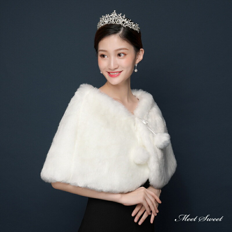 【P5倍★BLACK FRIDAY限定】ウエディングケープ ウェディングケープ ポンポン 可愛い ウェディングショール ファーケープ ブライダル 結婚式 二次会 披露宴 発表会 花嫁 秋冬 白 オフホワイト 花嫁ケープ パーティー 肩掛け かわいい 花嫁小物 海外挙式 前撮り フォーマル