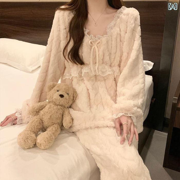 パジャマ レディース 秋冬 プリンセス風 珊瑚マイヤー 部屋着 ルームウェア 厚手 あったか 上下セット かわいい フランネル