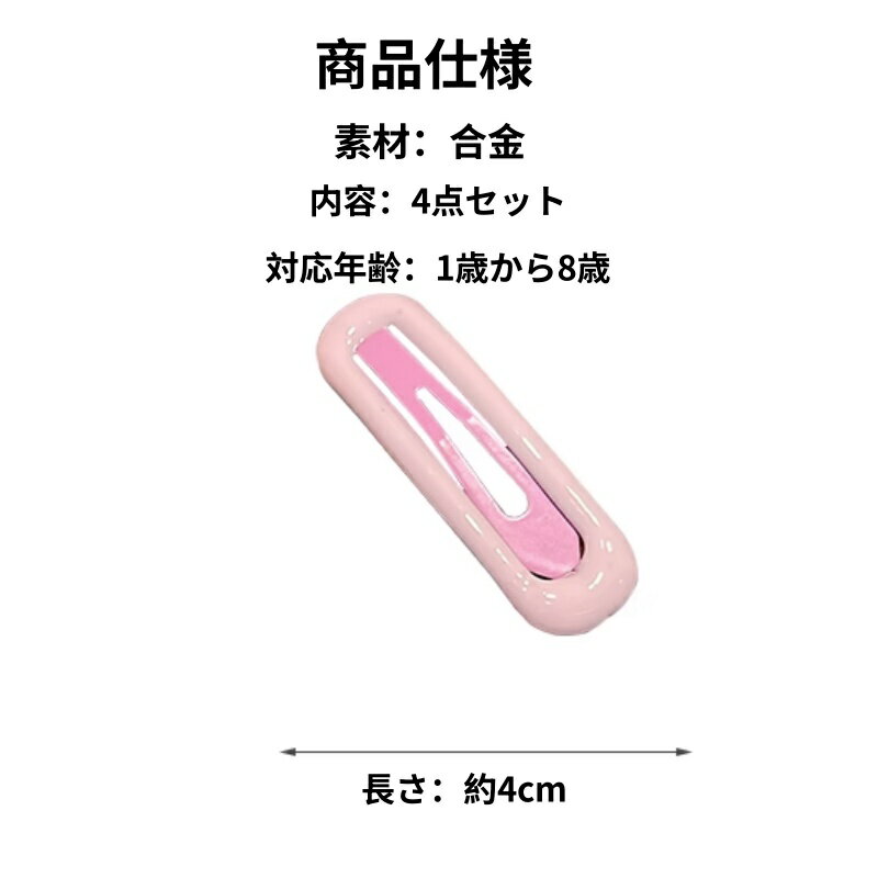 子供用 ヘアピン 4点セット カラフル 可愛い 星 ハート形 2歳 3歳 5歳 ベビー、子供用のヘアピンが新登場です。 ・シンプルな形で、左右どちらにも付けられるデザインです。 ・ワンピースやドレスとの相性も抜群です。 ・クリップで髪を挟むだけで天使のような可愛さに。 乳児から小学生まで幅広くお使い頂けます。 入学祝い等にもオススメ。 色んな組み合わせを楽しめる、可愛いヘアピン4点セット。 マカロン色で様々なシーンで活躍! サイズ Size 部位 長さ 幅 年齢目安 F 4cm 2.5cm 幼児から小学生 素材 合金 タイプ 全7タイプ 生産国 中国 ご注意 種類によって大きさが若干異なります。 輸入品のため、糸の継ぎ目や縫製等が甘い部分、糊跡等が生じる場合がございますが、予めご了承くださいませ。 商品によって、多少の誤差が生じる事があるとは思います。予めご了承ください。 お使いのモニター環境等により、実際の商品と色味が若干異なる場合がございます。 ★商品でお気づきの点がございましたらレビュー記載前に当店までお問い合わせください。 こちらもおすすめ♪