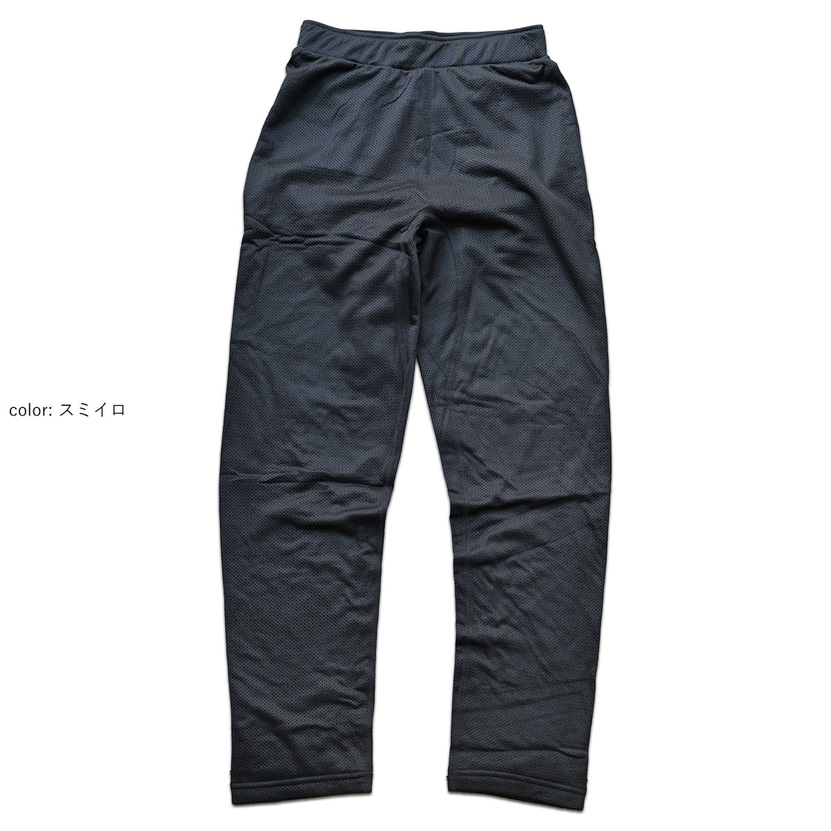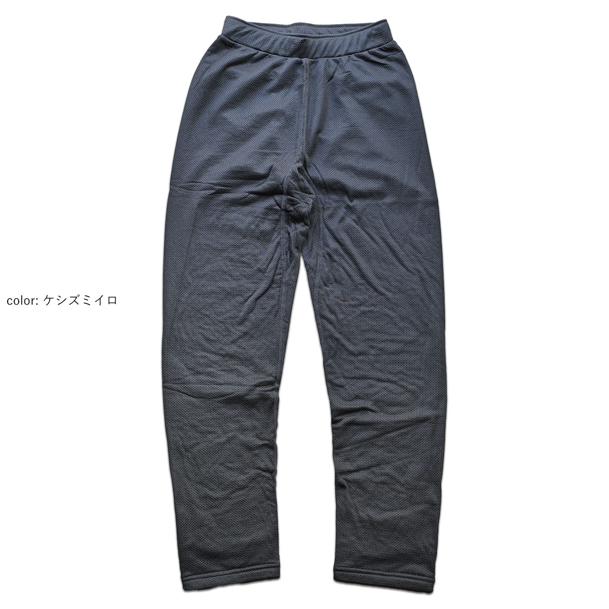 一部詳細画像に他製品(同素材)の写真を掲載しております アイテム説明 思いと創造 カルフワタイツの販売当時、octaを使用した他社のアイテムはすべてoctaを裏地に使用していました。 それらはどちらかというと、日本よりも寒く標高が高い環境でのアクティビティを想定していたからかもしれません。 凌としても軽くてほどほどの保温性のあるoctaには注目をしていましたが、裏地として使用するつもりはありませんでした。 凌のフィールドである低山では1枚物のoctaのタイツに、時には春夏物の、時には秋冬物のパンツをレイヤードして使う方が自由度も高く圧倒的に汎用性が高いと感じたからです。 寒い季節のシノギングでは行動中に適度な保温性を提供するアクティブインサレーションとして、暖かい季節には、お泊りシノギングで夜を凌ぐ股引として、バックパックの隙間に滑り込ませておけば一年中何かと使えます。 着心地 とても軽くてほどほどに暖かい着心地です。 この「ほどほどに」というところがまさに凌ぐという概念と共通していて、延々と続く尾根の登りやアップダウンを繰り返すようなルートでもオーバーヒートしない着心地はシノギングにうってつけです。 着こなし まず、素肌に直接穿くのが基本です。 そして、凌には通気度の異なるパンツを用意しているので、体質やその時の天候に合わせて最適なパンツを選んで、いろいろなレイヤードでカルフワタイツの着こなしを楽しんでください。 気候によっては「ザ・股引」スタイルでハンモックまわりをうろうろするのも乙な物です。 素材の特長 表面の見た目は単なるメッシュですが、裏面は細かなモフモフの繊維に覆われているので、軽量でありながら必要十分な暖かさを提供します。 画期的なポリエステル素材の帝人Octaは、同じ直径のポリエステル繊維の重さに比べて約半分と軽く、繊維の中心の空洞部分と、表面に放射線状に配列された八本の突起が汗を素早く吸い上げて拡散させるだけではなく、その独特の形状によってできる空間に多くのデッドエアーを含むことで遮熱保温効果を実現します。 店主コメント「 レイヤリングによって様々なアクティビティに通年使える軽量ミッドレイヤーです。一般的なフリースと異なり、Octaは構造上洗濯や摩擦によって毛が抜け落ちにくいのも特徴。長く利用できるだけでなく、マイクロプラスチックの排出を減らすことができます。 」 2024FW update 従来よりも股下を2cm短く、ふくらはぎ~裾の幅を広げることで、膝から下にゆとりができました。 長時間の着用によるストレス及びずり上がりを軽減します。 ディティール・特徴 保温、吸汗、速乾、透湿、軽量 軽くてフワフワ 肌あたりをよくするシンプルな縫製 ごろつかないフラットなウェストまわり 穿きやすいやや深めの股上 ユニセックス Octa オクタは穴の空いた中空糸に、8本の突起を放射線状に配列したタコ足型断面のポリエステル繊維。従来の中空糸を超える軽量感や吸汗速乾性を実現しました。 ・同じ直径のポリエステル繊維に比べて、2分の1程度の重量。 ・水や汗が通りやすくなり、サラッとした快適な着心地。 ・中空部と8本の突起による空間に含まれるデッドエアーが遮熱効果を実現。 サイズ詳細 サイズウエストヒップわたり股上股下ふくらはぎ巾裾幅 XS58-66842719681714.5 S62-709028207017.515 M66-74962921721815.5 L70-8010230227418.516 XL76-881083123761916.5 [ 単位:cm ]値はブランド公式サイトより一部引用 スペック・注意事項 【品番】042040 【カラー】スミイロ…S82墨色(ブラック)、ケシズミイロ…K23消炭色(チャコールグレー)、ススイロ(S123煤色)…ミネラルグレー 【重量】103g 【素材】帝人octa 94g/m2 【組成】ポリエステル100% 【生産】中国製