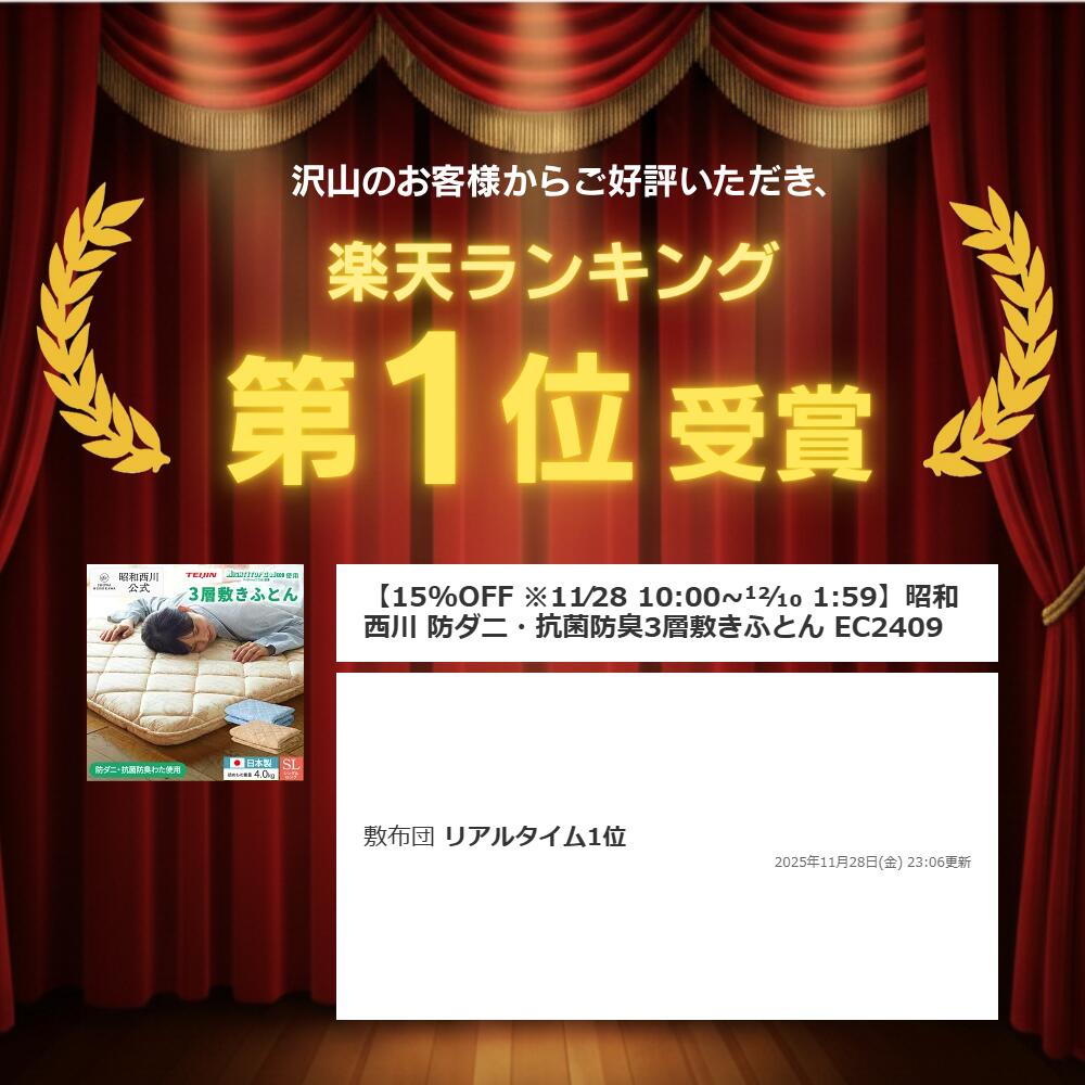 【15%OFF ※~12/11 1:59】楽天1位 昭和西川 防ダニ・抗菌防臭3層敷きふとん EC2409 敷布団 シングル 日本製 西川