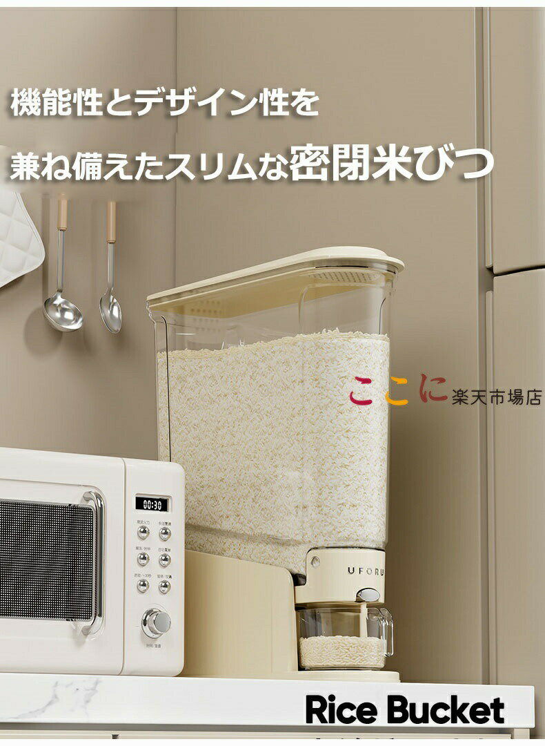 【商品番号】y759655 【カラー】ベージュ、グリーン 【サイズ】5KG:36.5*12*33.5cm/10KG:36.5*12*45.5cm 【容量】5KG/10KG 【材質】PP、PET 【安心素材】食品グレードのPP素材を使用し、シリコンで密封されているため、防湿性があり、十分な気密性を確保します。 【ボタン式】ボタンを押すだけ、お米が出続ける 【内部傾斜設計】内部は傾斜した漏斗設計を採用しており、お米が残らずスムーズに流れ出ます。 【虫除けボックス付き】蓋にポケットが付いている場合は、防虫剤や乾燥剤を入れると密閉性が高まり、お米の品質を保つことができます。 【様々な種類が対応可能】緑豆、小豆、粟、オーツ麦、大麦、米、大豆などを保存可能です。