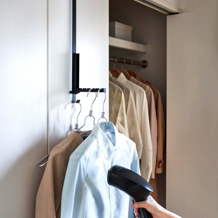 【LINEお友達で最大330円クーポン】[ 使わない時は折り畳める衣類スチーマー用ドアハンガー タワー ] 山崎実業 公式 tower 4328 4329 白 黒 / 衣類スチーマー ハンガー ラック フック 折り畳みドアハンガー 折りたたみ リビング クローゼット