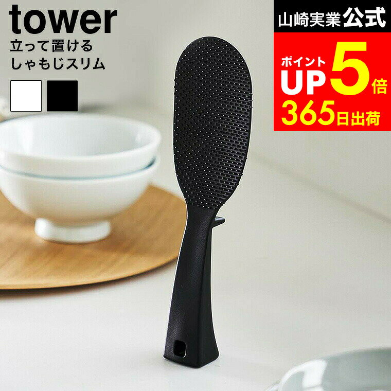 【LINEお友達で最大330円クーポン】[ 立って置けるしゃもじ タワー スリム ] 山崎実業 公式 キッチン tower 4758 4759 ホワイト ブラック / 食洗機対応 立つしゃもじ 自立 くっつかない しゃもじ 立つ 引っ掛け