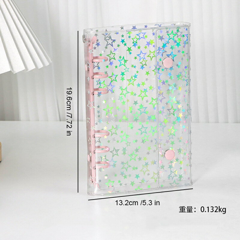 【832円GET★2点購入クーポンで】シール帳 A6 きらきら 星柄 透明 バインダー クリア 【リフィル10枚付】シールバインダー PVCカバー はがせる シール手帳 台紙 6穴 女の子 男の子 大人向け クリアバインダー シール収納 推し活グッズ