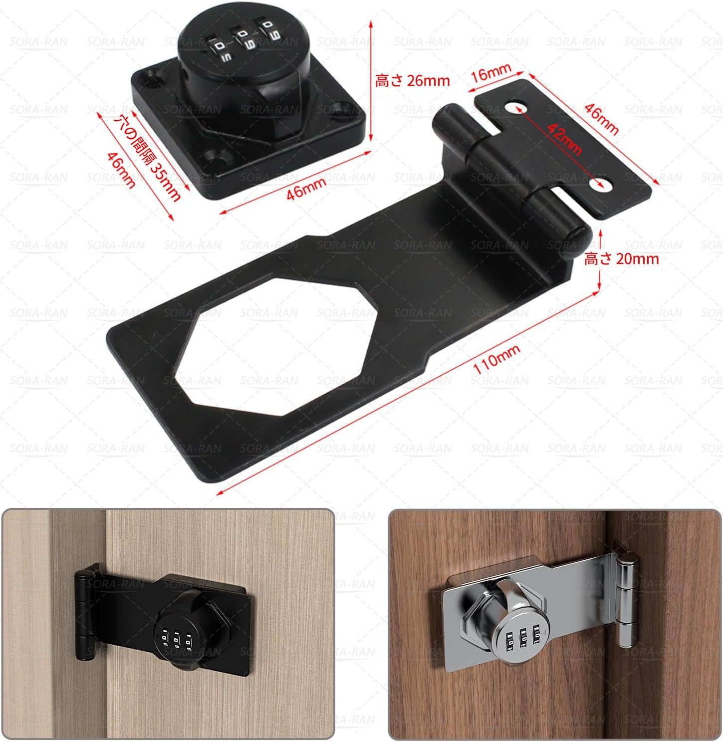 ドアロック 3桁ダイヤル式 部屋鍵後付け 引き戸 部屋 補助錠 落とし防止 室内 暗証番号 引き出し 亜鉛合金製 耐久性 防犯 金具 防錆 南京錠 窓 扉 玄関 キャビネット ロッカー ポスト 収納ボックス 学校 自宅 (マットブラック 90°)