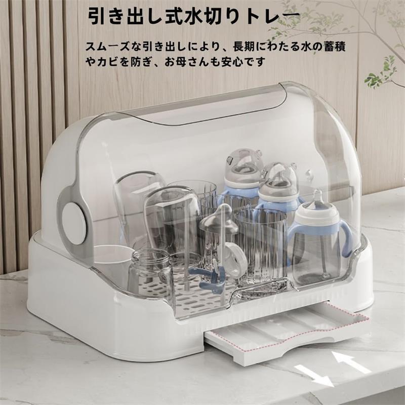 哺乳瓶乾燥ラック 哺乳びん乾燥機 哺乳びんホルダー ダストフリー 哺乳瓶乾燥ラック 取り外し可能 水トレイ付き 大容量 お手入れ簡単 哺乳瓶専用容器 カバー付き 乾燥 持ち運び便利 スライド式 引き出し ブラウン ホワイト グレー プレゼント ギフト 贈り物 送料無料