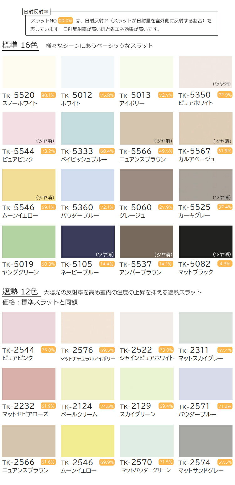 カットサンプル依頼はこちらのお問合せフォームより送付先ご住所、品番をお知らせください■商品名:アルミブラインド スリット窓仕様仕様 スラット幅25mm標準スラット(16色)TK-5520 スノーホワイト・TK-5012 ホワイト・TK-5013 アイボリー・TK-5350 ピュアホワイト・TK-5544 ピュアピンク・TK-5333 ベービッシュブルー・TK-5566 ニュアンスブラウン・TK-5567 カルアベージュ・TK-5546 ムーンイエロー・TK-5360 パウダーブルー・TK-5060 グレージュ・TK-5525 カーキグレー・TK-5019 ヤンググリーン・TK-5105 ネイビーブルー・TK-5537 アンバーブラウン・TK-5082 マットブラック遮熱スラット(12色):TK-2544 ピュアピンク・TK-2576 マットナチュラルアイボリー・TK-2522 シャインピュアホワイト・TK-2311 マットスカイグレー・TK-2232 マットセピアローズ・TK-2124 ペールクリーム・TK-2129 スカイグリーン・TK-2571 パールブルー・TK-2566 ニュアンスブラウン・TK-2546 ムーンイエロー・TK-2570 マットパウダーグリーン・TK-2574 マットサンドグレー ■メーカー:立川機工(日本製)メーカー希望小売価格はメーカーカタログに基づいて掲載しています▼ご注意イメージ写真はできる限り実物に近づけるよう、撮影を行っておりますが、モニターの種類や環境などにより、実物の明るさや色と微妙に異なる場合がございますので、ご了承の上ご注文ください。▼出荷日についてオーダーでの受注生産となりますためご注文後「ご注文確認のメール」を必ずお送りしております。サイズ、仕様、価格等をご確認の上ご返信をお願い致します。ご返信をいただきました後メーカー手配となりますので、手配後のサイズ等の変更・ご返品は一切お受けできませんのでご了承くださいませ。お届けは、メーカー手配後、約1週間ほどお日にちがかかります。改めて納期のご連絡を致しますのでどうぞ宜しくお願い致します。▼送料について沖縄、離島地域は別途中継料が別途かかりますので予めご了承の上ご注文お願い致します。ご注文いただきました後改めて送料のほう訂正しまして「ご注文内容のご確認」メールをお送り致しますのでどうぞ宜しくお願い致します。■ご注意カラーのイメージ写真はご使用のモニターの機種や環境により実際の商品と異なって見える場合がございます。イメージ写真における色再現性につきましては保証できかねますので予めご了承ください。カラーのイメージの違いの交換、返品は承れません。生地サンプルは無料でお送り致しますのでご注文前にご請求お願いします。 商品名 アルミブラインド スリット窓仕様 スラット幅25mmサイズ製品幅は1cm単位、製品高さは1cm単位で製作可能。※製品高さは1~2cm程誤差が生じる場合がございます。※幅15~26cm 高さ11~300cmまでスラットカラー標準(16色)・遮熱(12色)※スラットカラーとヘッドボックス・ボトムレール昇降コード・ラダーコードの色は同色または同系色の組み合わせになります。組み合わせによっては同系色でも色の違いが目立つ場合がございますのでこちらのリンクより画像でご確認ください。 オプション サッシ部分に取付ができない場合などの場合オプション部品で補助金具がございます。ご希望のお客様はご注文の際備考欄へご記載の上ご注文お願いします。 取付補助金具詳細はこちら 操作方法ポール式右操作(昇降はタッセル、スラットの回転はポールで行います)ポール長さ50cm・100cm・150cm製品仕様立川機工(アルミブラインド)製品仕様と取付方法はこちらメーカー 立川機工(FIRSTAGE) ※メーカー保証1年価格・納期についてご注文の際は一番小さいサイズの価格になります。オーダー品となりますためご注文後「ご注文確認のメール」を必ずお送りしております。サイズ、仕様、価格等をご確認の上ご返信をお願い致します。ご返信をいただきました後メーカー手配となりますので、手配後のサイズ等の変更・ご返品は一切お受けできませんのでご了承くださいませ。お届けは、メーカー手配後、約1週間ほどお日にちがかかります。改めて納期のご連絡を致しますのでどうぞ宜しくお願い致します。送料・代引きについて北海道、沖縄、離島へのお届けの場合、別途送料がかかりますので予めご了承くださいませ。また一部地域へのお届けの場合配送ができない場合もございますのでその際は改めてご連絡致しますのでご了承くださいませ。また製品幅200cmを超える商品はメーカー直送での出荷になりますので代金引換はご利用できませんのでご了承くださいませ。■アルミブラインド一覧はこちら 立川機工(アルミブラインド一覧) 標準仕様 耐水仕様(水回り) ノンビス(つっぱり) つっぱり耐水仕様 コードレス仕様 スリット窓仕様