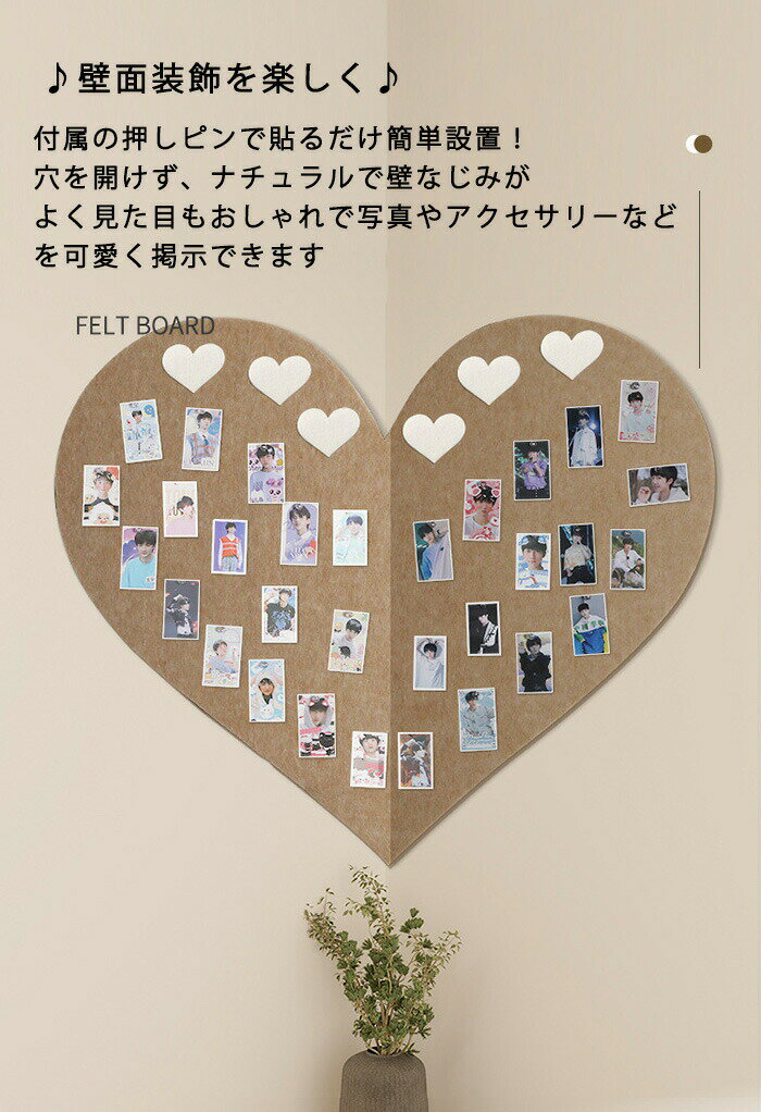 コルクボード 穴不要 ボード ハート 掲示板 フォトフレーム フェルト製 DIY ウェルカムボード ハリペタ 壁貼りフォトフレーム ウェルカムボード 伝言板 ポスター 写真立て 簡単設置 壁掛け クリップピン 壁掛け写真飾り インテリア