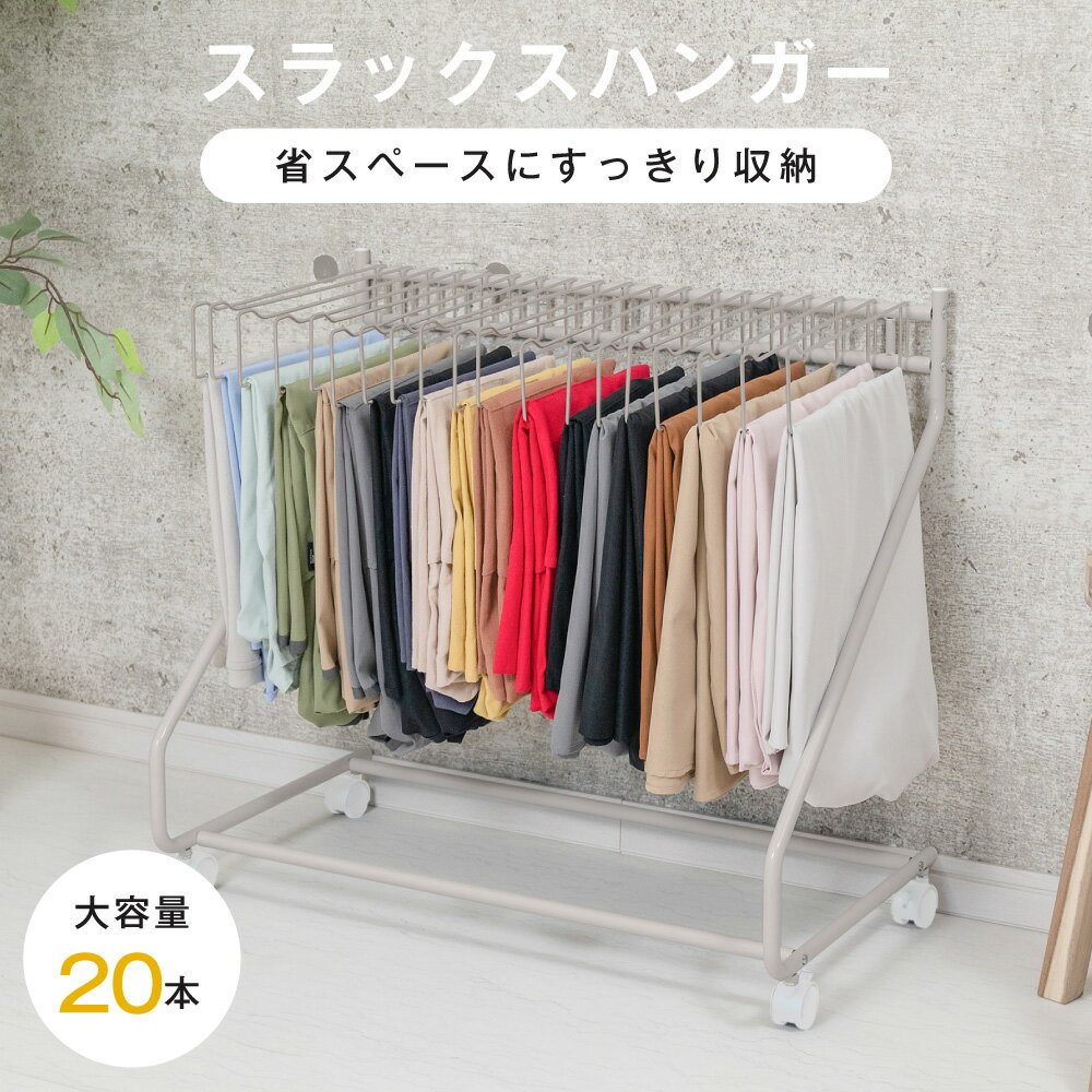 ⭐残り9台→3,114円!クーポンで!⭐フスラックスハンガー ズボンハンガー クローゼット収納 大容量 20本掛け スイング式 キャスター付き 押入れ収納 コンパクト ボトムスハンガー スリム 衣類収納 タオル掛け ハンガー 室内干し 部屋干し 送料無料 sry-f-0009