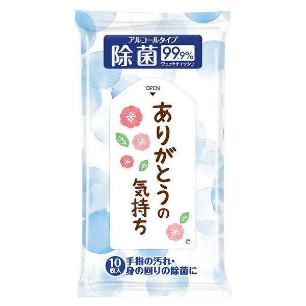 ありがとうの気持ち 除菌ウエットティッシュ10枚入(1個)【ありがとう お礼 プチギフト 退職 大量 感謝 プレゼント ギフト プチギフト 退職 メッセージ お礼の品 除菌 結婚式 ウエットティッシュ 産休 卒園 卒業 除菌シート アルコール 携帯 ウイルス対策 予防 衛生】