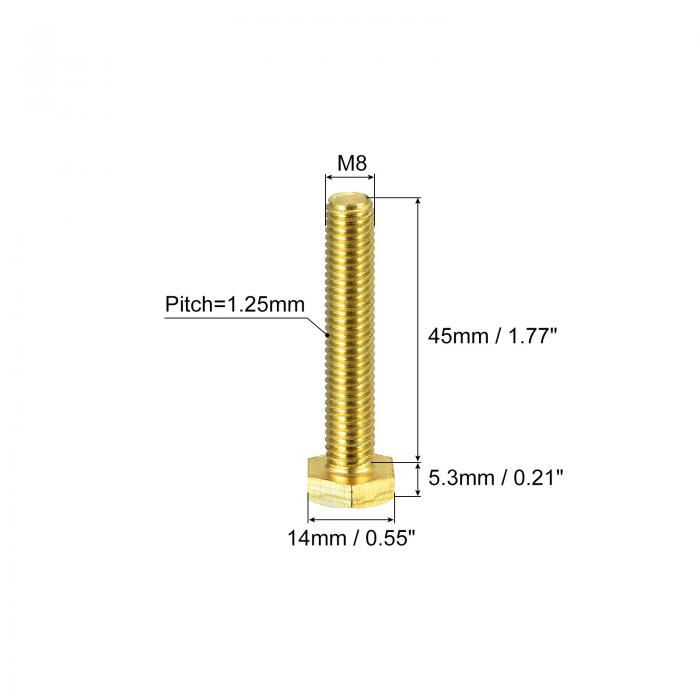 真鍮六角ボルト 全ねじ グレード4.8 ソリッド 黄銅六角ボルト 小ねじ 機械ねじ M8x45mm 5個