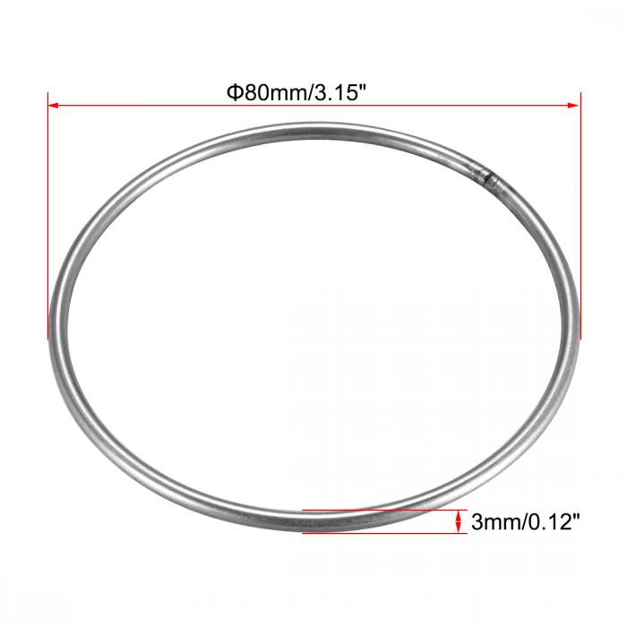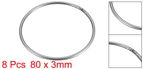 溶接Oリング 丸型Oリング ストラップ付き 80 x 3mm ステンレススチール シルバートーン 8個入り