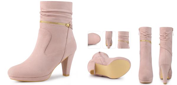 Perphy ミッドカーフブーツ 厚底 ブロックヒール レディース ダストピンク 24.0cm