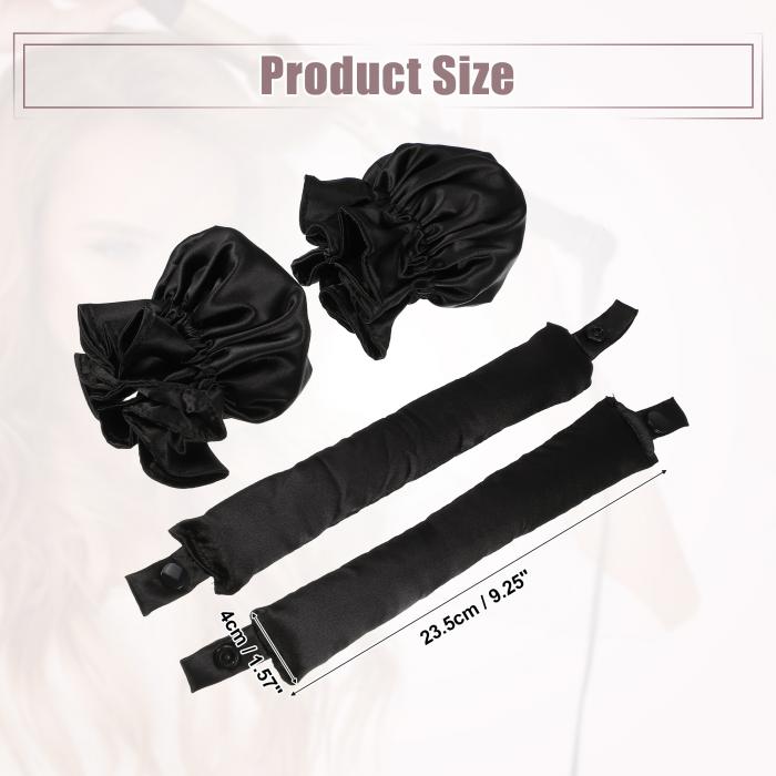 VOCOSTE ヒートレスヘアカーラー4本 サテンヒートレスカーリングロッドヘッドバンド ヘアキャップセット付き 就寝用ヘアカーラー ロングヘア用ヒートレスヘアカーラー ヒートレスカール用フ レキシロッド ブラック