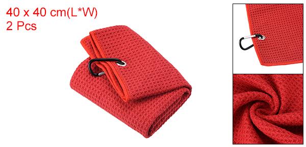 PATIKIL 40 x 40 cm 三つ折りゴルフタオル 2個入り ワッフルパターン タオルソフトファイバー 強力な吸水力 Dクリップ付き ゴルフ愛好家用 レッド