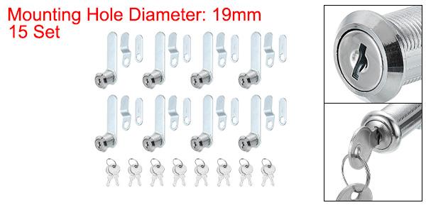 PATIKIL キー付き3/4" キャビネットロック 15個セット ジンク合金カムロックシリンダー RVロック キーアライク キャビネット RV引き出し 収納扉 ツールボックス用 シルバー
