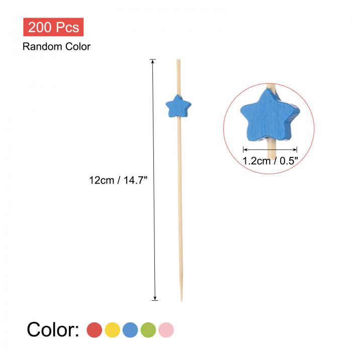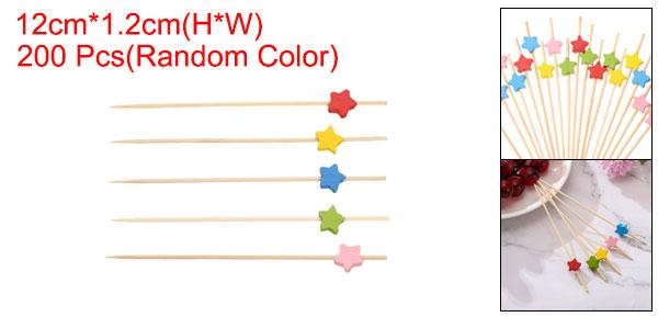 200個 カク テルピック 4.7" 長い星形 竹 歯楊枝フルーツスティック装飾用カク テルスキューアピックスパーティードリンクフードフルーツ前菜フルーツ カラフル