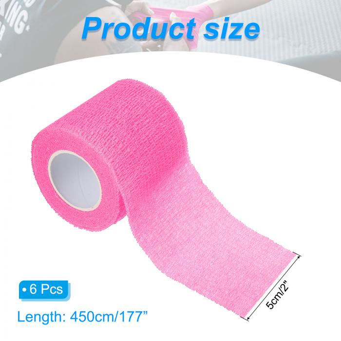 PATIKIL 2" x 177" 自己粘着性包帯巻き 6個の弾性自己呼吸性自巻きテープ スト レッチアスレチックスポーツリスト足首アウトドアテープ 明るいピンク