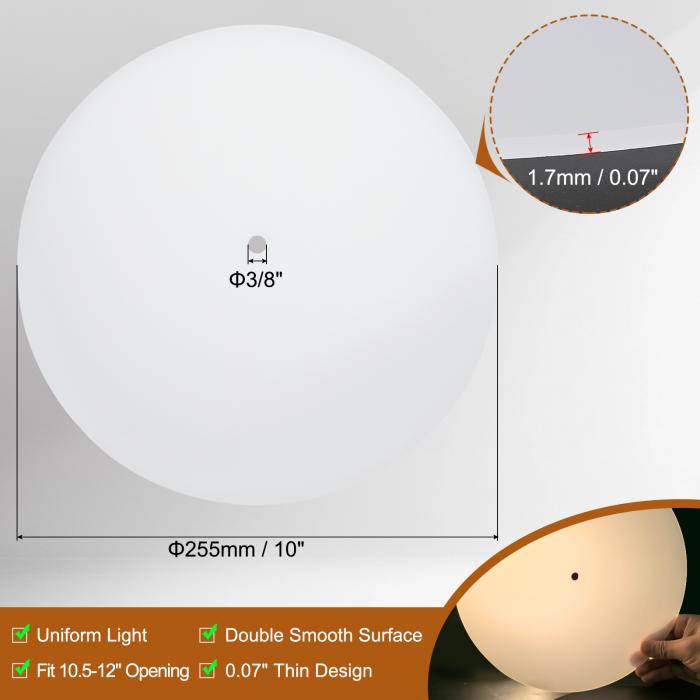 PATIKIL ランプシェードディフューザー 直径10" 中央穴3/8" ラウンドディフューザー ドラムランプシェード用 1.7mm厚 10.5-12" 開口部に適合 半透明ホワイト