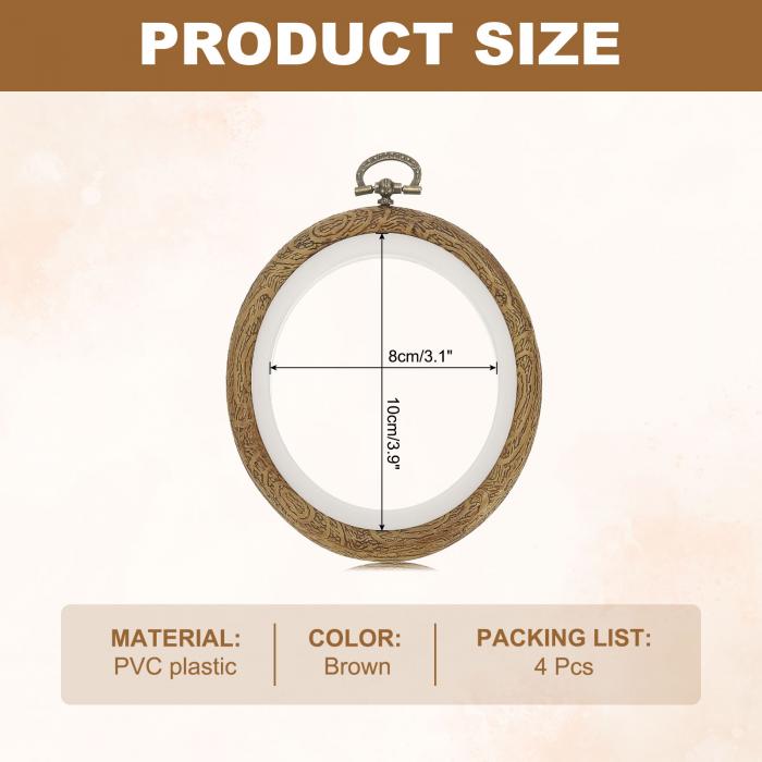 PATIKIL 4個3.9"x3.1" 刺繍フープフレーム模擬木製楕円形クロスステッチフープリング 刺繍アートクラフトハンディー裁縫装飾