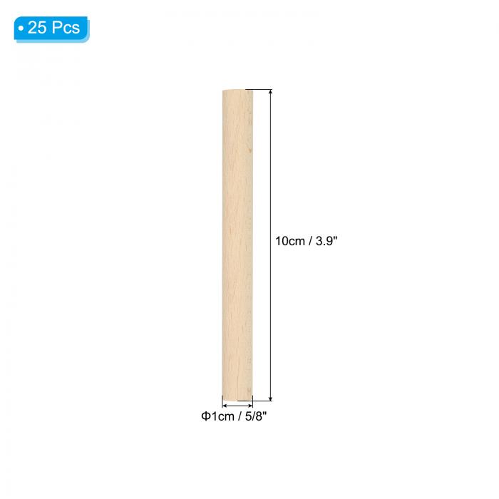 PATIKIL 15 mm x 10 cm ダボ棒 木の棒 25個 未仕上げ 木製ダボロッド 丸ダボ ハードウッドスティック DIY 工芸品や室内装飾用