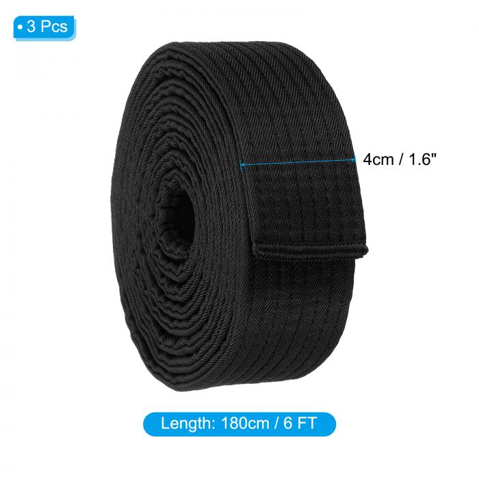PATIKIL テコンドーのカラー ランキングベルト、3本セット 1.6"x6フィート ポリエステル製のマーシャルアーツカラー ランキングベルト コーチの指導練習用 黒