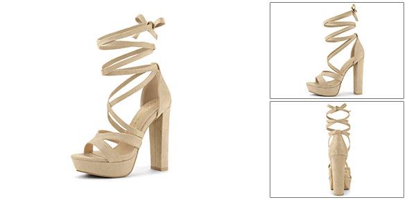 Allegra K レースアップ サンダル 編み上げ プラットフォーム ハイヒール レディース ベージュ 26.0cm