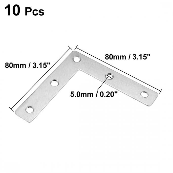 角度コーナーブレース 修理ブラケット フラットプレート L型 80mmx80mm 10個入り