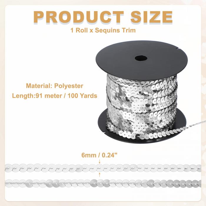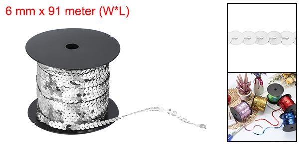 100ヤードフラットシーケンストリム、6mmパレットシーケンスストリングリボンロールスパンコールフラットシーケンストリップ、クラフト装飾縫製衣装アクセサリー用、シルバートーン
