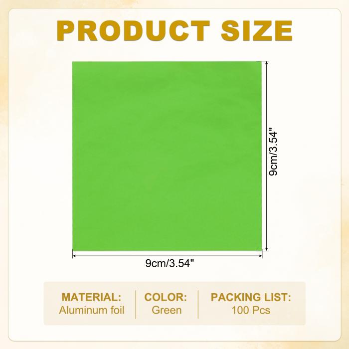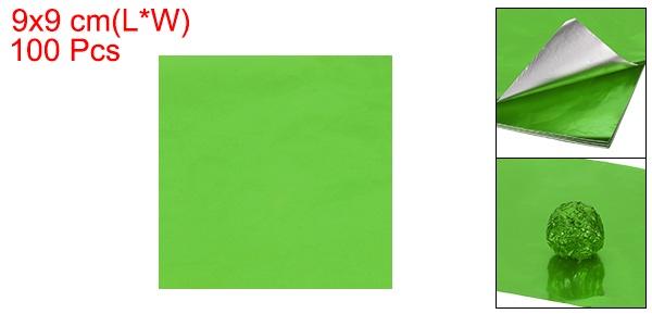 PATIKIL 3.5x3.5インチの箔キャンディラッパー 100枚の正方形光沢アルミ箔キャンディ包装紙 DIYチョコレートキャンディ包装デコレーション 緑