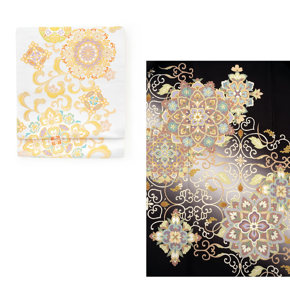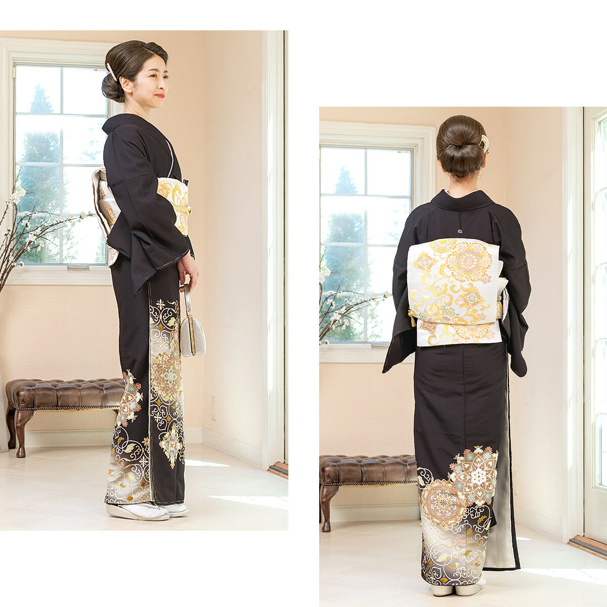 【スーパーSALE限定☆最大3000円クーポン配布中☆】【レンタル】黒留袖 レンタル フルセット 結婚式 着物 唐花 華文 唐草 ポリエステル 五つ紋 五三桐 母親 仲人 親族 礼装 正装 着物セット 黒留袖セット フォーマル 往復送料無料