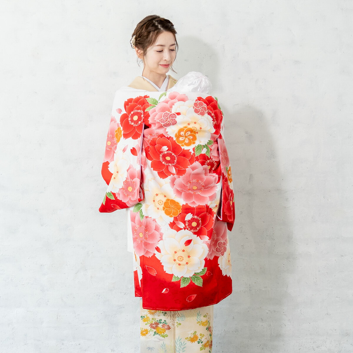 商品詳細商品番号ren-ubs0083色赤素材(初着)表地 ポリエステル100%胴裏 ポリエステル100% 長襦袢 ポリエステル100%内容初着(襦袢付)・フードセット(フード・よだれかけ・お守り袋)着用時期10月~翌年5月頃まで状態について新品商品ではありませんので、劣化がみられます。着用時、影響のある部分に目立った損傷はありませんが、レンタルの性質上、予めご了承ください。注意事項※撮影環境やモニターにより、実際の商品と若干色味が異なる場合がございます。ご心配がございましたら、お気軽にお問い合わせください。※予約カレンダーが「×」でも、システムの都合上注文が出来てしまいます。自動確認メールの後に予約不可の旨をメールで通知いたします。※予約カレンダーが「○」でも、他のお客様とほぼ同時刻に注文をされた場合にご予約いただけない可能性がございます。サイズ表身丈袖丈裄丈サイズ約102cm約56cm約65.4cm女の子のお宮参りにおすすめな初着赤ちゃんのお宮参りを素敵に彩る高級初着(産着)です。桜の織り柄の生地に、大柄の桜などが描かれたレトロモダンなデザインです。生地は、正絹の着物にも見劣りしない高品質のポリエステル素材です。ふわりとした着心地で、長く着ていても疲れにくい着物です。仕立て上がりですので、お届け後すぐにお召しいただけます。着物全体に華やかな吉祥文様が描かれ、格調高い雰囲気です。伝統的なこちらの和柄には、お子様の健やかな成長への願いが込められています。着物の着心地も、お子様に負担をかけにくく、やさしく包むようにふわりとしています。なめらかで肌触りのよい素材を使用しており、生後間もない赤ちゃんにも安心してお使いいただけます。初着の着付け方は、着物の背を前にして、付属の結び紐を襷(たすき)のように結びます。例としては、赤ちゃんの頭を左腕で支える場合、紐を右肩上、左腕下へと通し、背中側で結びます。本格的なこちらの高級初着なら、神社やスタジオでの写真撮影にも、綺麗なお姿を残していただけるはずです。ご家族やご親戚、ご友人の方へのプレゼントとしても素敵です。一生の思い出となる大切な記念日に、ぜひお役立てください。入学式・七五三・お宮参りのママに兄弟・姉妹でお揃いコーデに