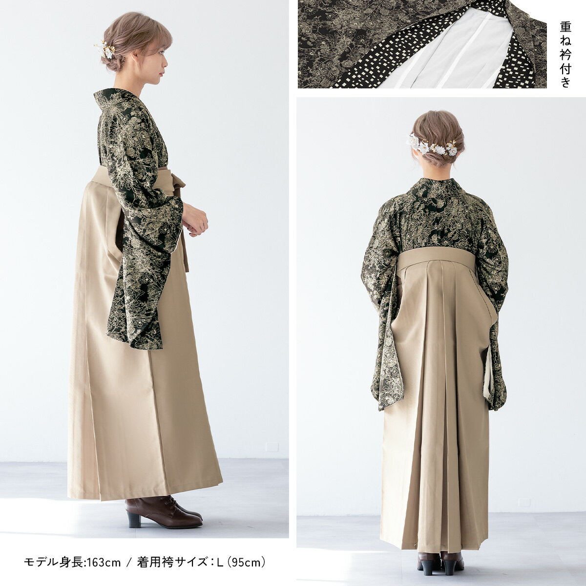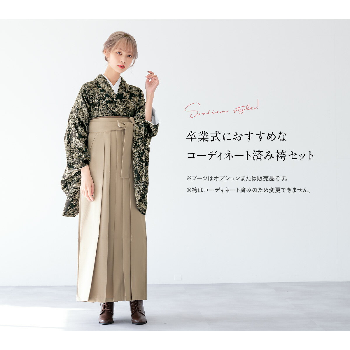 【決算大感謝祭限定|最大3000円クーポン配布中】|2/15~28【レンタル】卒業式 袴 レンタル 女 女性 袴セット フルセット 大人 レディース 大学 和服 着物セットブラック 黒系 花 ベージュ 創美苑 往復送料無料