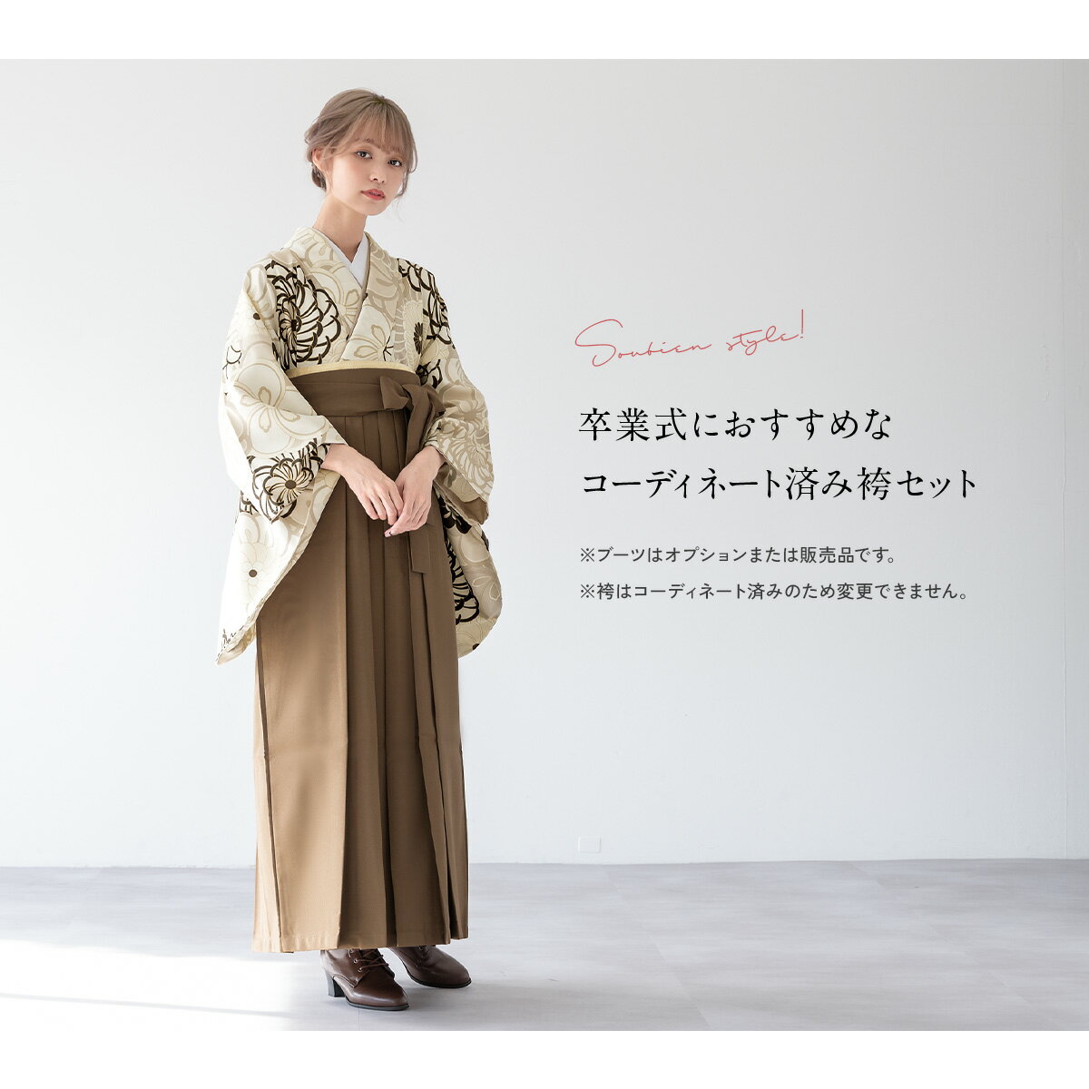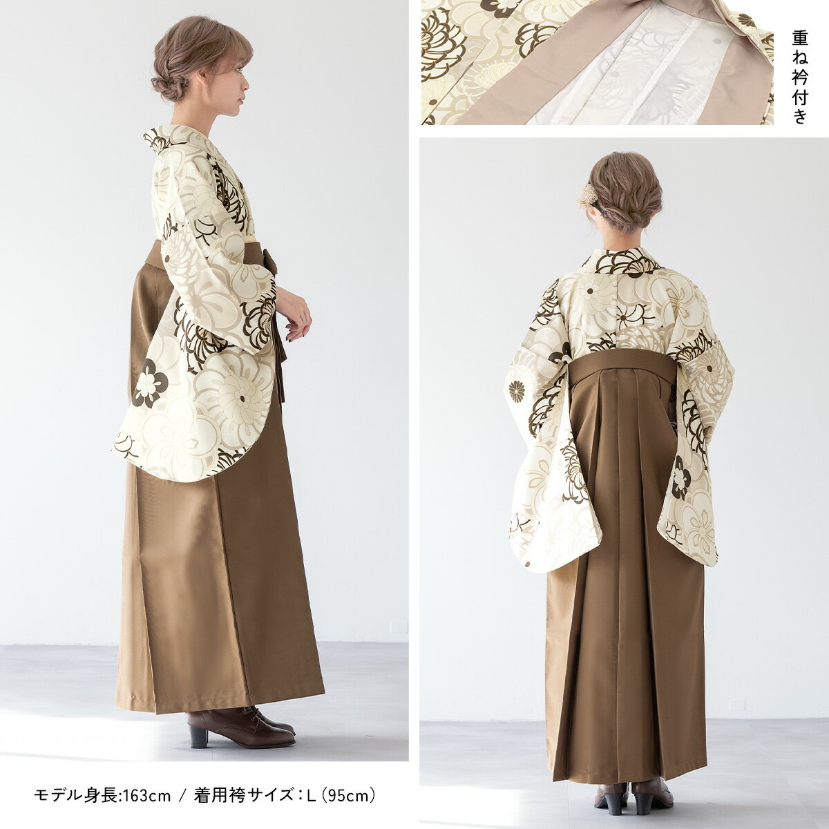 商品詳細商品番号ren-hms0969色着物 ベージュ系袴 ブラウン素材着物・袴:ポリエステル100%内容着物(重ね衿付)・袴・下帯・前板・襦袢(半衿付)・衿芯・伊達締め×2・腰紐×4・着付けベルト・草履・足袋(プレゼント)商品について草履は着物の色に合わせてお届けします。襦袢の半衿は、白半衿です。肌着は、衛生面の観点から貸し出しておりません。肌襦袢をご用意いただくか、カップの無いインナーで代用して下さい。着物の柄は大きな生地を使用して作られている為、柄の配置が画像と異なります。草履はフリーサイズのため、ワンサイズとなります。状態について新品商品ではありませんので、劣化がみられます。着用時、影響のある部分に目立った損傷はありませんが、レンタルの性質上、予めご了承ください。備考hmset0876kt-4721rep-nis10129rep-hm0143注意事項※袴や帯などの色やセット内容の一部変更と、それに伴う値引きは承っておりません。※予約カレンダーが「×」でも、システムの都合上注文が出来てしまいます。自動確認メールの後に予約不可の旨をメールで通知いたします。※予約カレンダーが「○」でも、他のお客様とほぼ同時刻に注文をされた場合にご予約いただけない可能性がございます。サイズ表身丈袖丈裄丈着物約106cm約76cm約68cm尺寸紐下対応身長S2尺3寸約87cm145-153cmM2尺4寸約91cm153-160cmL2尺5寸約95cm160-170cmLL2尺6寸約99cm170-175cm 貸衣裳SOUBIEN について貸衣裳SOUBIEN(創美苑)では、安心 価格 サイズ セット 利用 料金 返却 袴 はかま レンタル 着物レンタル 二尺袖 赤 レッド 臙脂色 えんじ エンジ 朱色 ピンク 紺 ネイビー 青 ブルー 白 ホワイト 黄色 イエロー 緑 グリーン 紫 パープル 黒 ブラック 灰色 グレー 通販 着付け 袴レンタル きものレンタル 全国 着物 商品 全国配送可能 仕立て上がり 着付け方 女性 身丈 式 和服 日本 手入れ メンテ 3月 変更 基本 着物袴 セット サロン 洗濯 写真室 時代 はいからさん ハイカラ 大正ロマン モダン レトロ セット 雑貨通販 ヘアスタイル kimono 街歩き 美容室 オシャレ スペシャル ガール スタイル レンタルプラン japanese 宅配 衣装 貸衣装 着物 フルセット の レンタル は1年先のご利用日まで 予約 が可能です。 心に刻むお手伝いを女学校 無地 小学校 中学校 高校 高等学校 大学 専門学校 大学生 卒業 成人式撮影 企画 予約会 着物初心者 家で撮影 フォトブック フレーム アルバム作成 される方にも オススメ です。 古典 レトロ モダン 前撮り 後撮り 写真 撮影 写真スタジオ スタジオ フォトスタジオ 家族写真 記念日 家族で着物 など様々なスタイル、シーンにご利用頂けます。 卒業式 結婚式 着付け 予約 着用 全国 入学式 2月 3月 9月 10月 確認 宅配 指定 きもの 女の子 店舗 徒歩 友人 ガイド 特選 受賞 加工 結婚式場 一般的 式場 パーティー 来店 観光 未婚女性 学生 親族 先生 ゲスト 2023年 2024年 2025年 特別な日を迎える1日が素敵な時間になりますように。↓ 袴のサイズを選び、カレンダーをご確認ください。(別ウィンドウで表示)↓ 袴のサイズを選び、カレンダーをご確認ください。(別ウィンドウで表示)