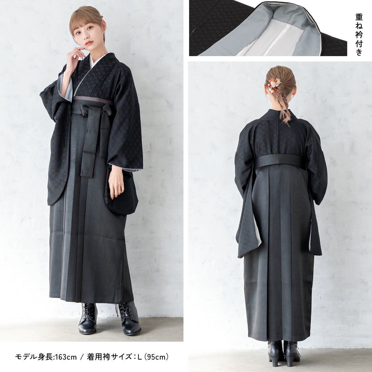 商品詳細商品番号ren-hms1005色着物 ブラック系袴 ブラック素材着物・袴:ポリエステル100%内容着物(重ね衿付)・袴・下帯・前板・襦袢(半衿付)・衿芯・伊達締め×2・腰紐×4・着付けベルト・草履・足袋(プレゼント)商品について草履は着物の色に合わせてお届けします。襦袢の半衿は、白半衿です。肌着は、衛生面の観点から貸し出しておりません。肌襦袢をご用意いただくか、カップの無いインナーで代用して下さい。着物の柄は大きな生地を使用して作られている為、柄の配置が画像と異なります。草履はフリーサイズのため、ワンサイズとなります。状態について新品商品ではありませんので、劣化がみられます。着用時、影響のある部分に目立った損傷はありませんが、レンタルの性質上、予めご了承ください。備考レンタル専用rep-nis10085rep-hml10026注意事項※袴や帯などの色やセット内容の一部変更と、それに伴う値引きは承っておりません。※予約カレンダーが「×」でも、システムの都合上注文が出来てしまいます。自動確認メールの後に予約不可の旨をメールで通知いたします。※予約カレンダーが「○」でも、他のお客様とほぼ同時刻に注文をされた場合にご予約いただけない可能性がございます。サイズ表身丈袖丈裄丈着物約106cm約76cm約68cm尺寸紐下対応身長S2尺3寸約87cm145-153cmM2尺4寸約91cm153-160cmL2尺5寸約95cm160-170cmLL2尺6寸約99cm170-175cm 貸衣裳SOUBIEN について貸衣裳SOUBIEN(創美苑)では、安心 価格 サイズ セット 利用 料金 返却 袴 はかま レンタル 着物レンタル 二尺袖 赤 レッド 臙脂色 えんじ エンジ 朱色 ピンク 紺 ネイビー 青 ブルー 白 ホワイト 黄色 イエロー 緑 グリーン 紫 パープル 黒 ブラック 灰色 グレー 通販 着付け 袴レンタル きものレンタル 全国 着物 商品 全国配送可能 仕立て上がり 着付け方 女性 身丈 式 和服 日本 手入れ メンテ 3月 変更 基本 着物袴 セット サロン 洗濯 写真室 時代 はいからさん ハイカラ 大正ロマン モダン レトロ セット 雑貨通販 ヘアスタイル kimono 街歩き 美容室 オシャレ スペシャル ガール スタイル レンタルプラン japanese 宅配 衣装 貸衣装 着物 フルセット の レンタル は1年先のご利用日まで 予約 が可能です。 心に刻むお手伝いを女学校 無地 小学校 中学校 高校 高等学校 大学 専門学校 大学生 卒業 成人式撮影 企画 予約会 着物初心者 家で撮影 フォトブック フレーム アルバム作成 される方にも オススメ です。 古典 レトロ モダン 前撮り 後撮り 写真 撮影 写真スタジオ スタジオ フォトスタジオ 家族写真 記念日 家族で着物 など様々なスタイル、シーンにご利用頂けます。 卒業式 結婚式 着付け 予約 着用 全国 入学式 2月 3月 9月 10月 確認 宅配 指定 きもの 女の子 店舗 徒歩 友人 ガイド 特選 受賞 加工 結婚式場 一般的 式場 パーティー 来店 観光 未婚女性 学生 親族 先生 ゲスト 2023年 2024年 2025年 特別な日を迎える1日が素敵な時間になりますように。↓ 袴のサイズを選び、カレンダーをご確認ください。(別ウィンドウで表示)↓ 袴のサイズを選び、カレンダーをご確認ください。(別ウィンドウで表示)