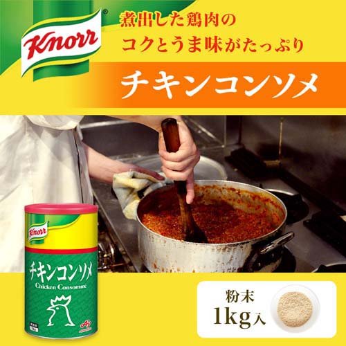 お店TOP>クノール チキンコンソメ 業務用 (1kg×2セット)【クノール チキンコンソメ 業務用の商品詳細】●新鮮な国産老鶏本来の風味と味を実現したチキンコンソメです。●スープ、煮込み料理、炒め料理などにおススメです。【召し上がり方】中身24gを1Lの熱湯で溶き、煮立てます。【品名・名称】乾燥スープ(コンソメ)【クノール チキンコンソメ 業務用の原材料】乳糖、食塩、鶏肉、デキストリン、砂糖、チキンファット、酵母エキス、食用油脂、たん白加水分解物、粉末しょうゆ、オニオンパウダー、酵母エキス発酵調味料、香辛料、チキンエキス、でん粉、果糖/調味料(アミノ酸等)、カラメル色素、酸味料、香辛料抽出物、(一部に小麦・乳成分・大豆・鶏肉を含む)【栄養成分】100g当りエネルギー:270kcaL、たんぱく質:11g、脂質:4.8g、炭水化物:47g、食塩相当量:37.8g【アレルギー物質】小麦・乳成分・大豆・鶏肉【保存方法】常温にて保存してください。【ブランド】クノール【発売元、製造元、輸入元又は販売元】味の素※説明文は単品の内容です。商品に関するお電話でのお問合せは、下記までお願いいたします。受付時間 平日9:30-17:00(土日、祝日、6月第3金曜日、夏期休暇、年末年始(12/29-1/4)を除く))調味料・加工食品・その他:0120-68-8181クノールスープ製品:0120-40-5656甘味料・アミノ酸含有食品:0120-16-0505味の素KK栄養ケア(アクアソリタ、アミノエールゼリーなど):0120-814-222リニューアルに伴い、パッケージ・内容等予告なく変更する場合がございます。予めご了承ください。・単品JAN:4901001240296味の素104-8315 東京都中央区京橋1-15-1※お問合せ番号は商品詳細参照広告文責:楽天グループ株式会社電話:050-5306-1825[業務用食品/ブランド:クノール/]