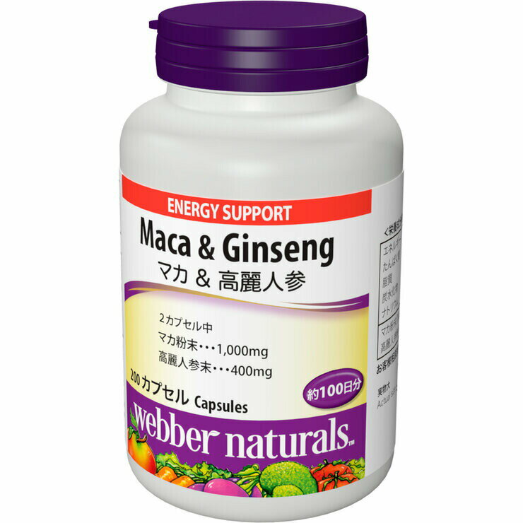 【5と0のつく日限定!ポイント5倍!期間限定!】ウェバー・ナチュラルズ マカ + 高麗人参 200 粒 Webber Naturals Maca + Korean Ginseng 200 Count ct573986