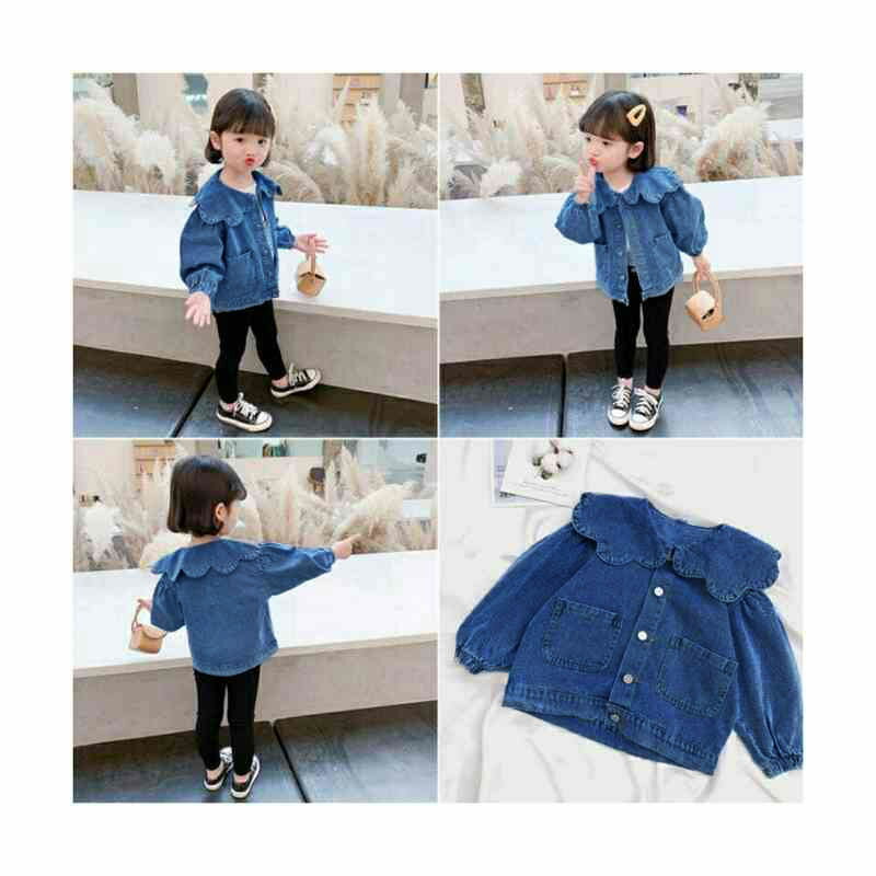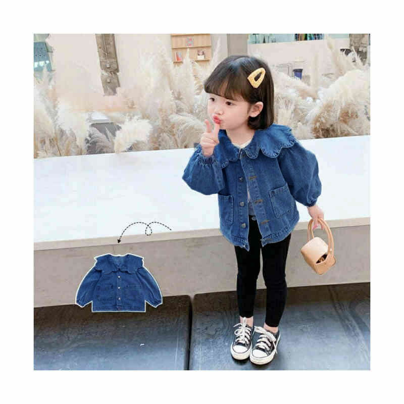 デニムジャケット キッズ 春秋 丸襟 カジュアルジャケット ショート丈ジャケット フリルジャケット デニム トップス ベビージャケット ベビーウエア 子供服 女の子 無地 シンプル カジュアル おしゃれ 送料無料