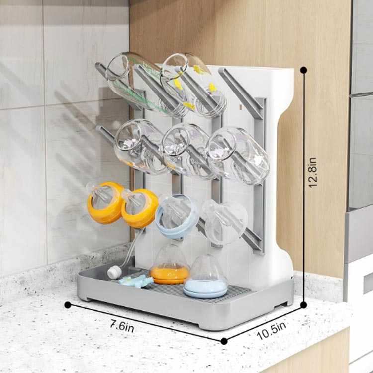 たっぷり収納しながら省スペース。哺乳瓶・乳首・ストロー・洗浄ブラシまで一括で干せる縦置き型のスリム乾燥ラックが新登場!使った後の哺乳瓶をしっかり水切りし、乾燥させながら収納スペースも確保できる便利アイテムです。スリムな縦置き型省スペース設計、シンク横やカウンターにも置きやすい、コンパクトデザインの哺乳瓶乾燥ラックです。パーツごとに分けて干せる設計で、衛生的に保管できます。水がたまるトレイ付きで、カウンターを清潔に保てます。オープンデザインにより、空気が自由に流れ、水の蒸発スピードをより速くなります。 密封のタイプより乾燥効果がより抜群で、最も速く衛生的で最適な乾燥が得られ、また細菌繁殖を防止、汚染を防げます。 サイズ F サイズについての説明 F 26*19*32※サイズ表の実寸法は商品によって1-3cm程度の誤差がある場合がございます。 素材 プラスチック 色 グレー ブルー 備考 ●サイズ詳細等の測り方はスタッフ間で統一、徹底はしておりますが、実寸は商品によって若干の誤差(1cm~3cm )がある場合がございますので、予めご了承ください。 ●製造ロットにより、細部形状の違いや、同色でも色味に多少の誤差が生じます。 ●パッケージは改良のため予告なく仕様を変更する場合があります。 ▼商品の色は、撮影時の光や、お客様のモニターの色具合などにより、実際の商品と異なる場合がございます。あらかじめ、ご了承ください。 ▼生地の特性上、やや匂いが強く感じられるものもございます。数日のご使用や陰干しなどで気になる匂いはほとんど感じられなくなります。 ▼同じ商品でも生産時期により形やサイズ、カラーに多少の誤差が生じる場合もございます。 ▼他店舗でも在庫を共有して販売をしている為、受注後欠品となる場合もございます。予め、ご了承お願い申し上げます。 ▼出荷前に全て検品を行っておりますが、万が一商品に不具合があった場合は、お問い合わせフォームまたはメールよりご連絡頂けます様お願い申し上げます。速やかに対応致しますのでご安心ください。