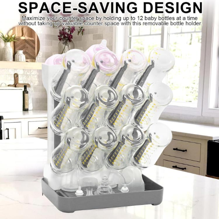 哺乳瓶 ブラシホルダー付き 哺乳瓶置き場 哺乳瓶乾燥ラック 縦置 スリム ボトルスタンド 哺乳瓶 スタンド 水切りラック 省スペース 収納スタンド 乾燥ラック 受けトレー付き コップ 水筒 ドライラック 出産祝い