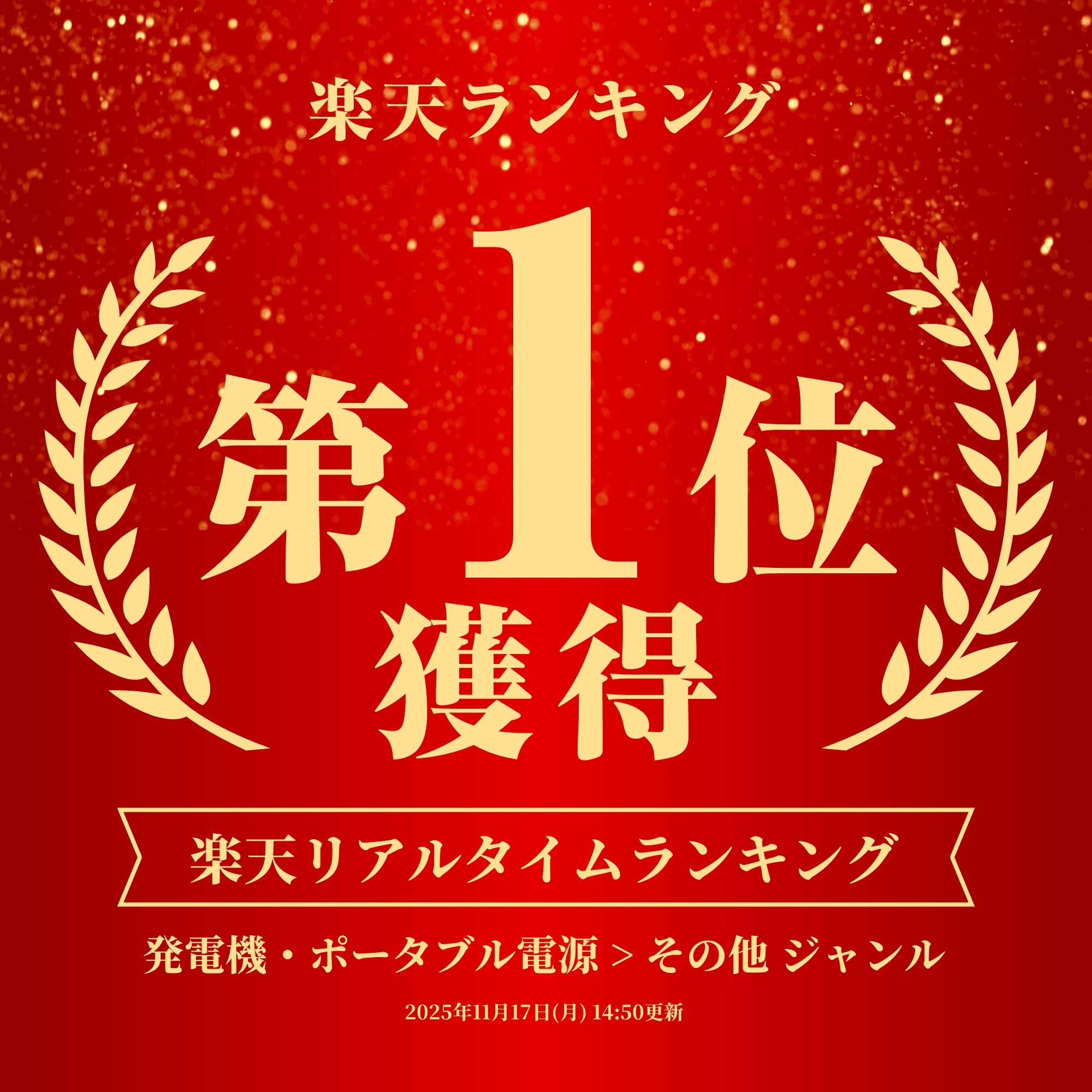 ◆様々なシーンに合わせて使える キャンプ・DIY・スマートフォンやパソコンの充電・照明・地震・停電など幅広く活躍。 ◆携帯に適したデザイン 収納型の取っ手付きで持ち運びに便利。 一人でも無理なく持ち運ぶことができます。 ◆車中泊でも大活躍 シガーソケット対応で、車載冷蔵庫など消費電力の大きい製品にも使用可能。 ◆アウトドアでも手軽に電源を パソコン・スマートフォン・電気毛布・車載冷蔵庫・扇風機など様々な製品に給電できます。 ◆家庭にあると便利な一台 地震や停電など災害時の防災グッズとしても最適。 電源供給が不安定な状況でも安心です。 ◆ソーラーチャージャー対応 ソーラーチャージャーと組み合わせれば太陽光充電が可能。 大自然の中でもクリーンエネルギーを活用できます。 ◆純正弦波出力 精密機器にも安心して使用できる純正弦波出力。 ノートPCなども安定して稼働します。 商品仕様 型番 / JAN FFF-PB120K1 / 4589969395892 電池容量 444Wh / 40Ah / 11.1V(120,000mAh, 3.7V) サイズ 約296(D) × 196(H) × 94(W)mm 重量 約4.6kg 内蔵電池 リチウムポリマー電池 充電方式 ACアダプター:DC15V / 4.5A(約8時間) カーチャージャー:DC12V / 最大5A(約8時間) ソーラーパネル:DC13~25V / 最大4A(約11時間) 出力 USB Type-C 40W ×1 USB Type-C 10W ×1 USB Type-A ×3(最大2.1A) DC出力 ×3(9~12.6V / 最大15A) シガーソケット ×1(9~12.6V / 最大15A) AC 100V 60Hz ×2(合計450W 瞬間最大500W) 使用温度条件 -10℃~40℃(推奨:10℃~30℃) 保存温度条件 -10℃~45℃ バッテリー寿命 約500回 保護回路 短絡保護 / 過電流保護 / 過電圧保護 / 過小電圧保護 / オーバーロード保護 / 過温度保護 残量表示 LED表示 付属品 バッテリー本体 / ACアダプター / カーチャージャーアダプター / 取扱説明書 / 保証書 類似商品はこちらアースパワー 発電機 ポータブル電源 EL16109,745円~ トライカンパニー 防災 湯わかし ボックス 1,850円発電機 カセットガス インバーター 発電機 ガ45,500円 防災ラジオ 防災テレビ 手回しラジオ ポータ11,800円 トイレ 災害 簡易便座 非常用 アウトドア 2,380円岩谷 カセットガスストーブ iwatani 岩15,480円岩谷 カセットガスストーブ マイ暖III ポー10,980円 車中泊 マット ベッド 枕付き 簡易ベッド 2,780円 車中泊 マット 枕付き ベッド 簡易ベッド2,780円類似商品はこちらアースパワー 発電機 ポータブル電源 EL16109,745円~ トライカンパニー 防災 湯わかし ボックス 1,850円発電機 カセットガス インバーター 発電機 ガ45,500円