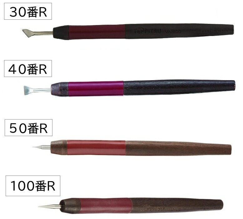VANCOの鉄筆(スタイラス) 鉄筆(スタイラス)はデザイナー様の声からできた商品です。 作品を作るときに、目印線を引きたい折り目をつけたい等の要望があり、従来の商品である鉄筆50番を使用すると柔らかい物は破けてしまうという意見をいただきました。 このような意見をいただき、針を太くしたものやヘラ状のものを作成して、従来の鉄筆50番の改良版と共に発売しています。 材料 木製、特殊鋼 エンジ色 本体寸法 長さ約150mm グリップ部分の太さ約11mm 針太さ約0.8mm 特徴等 従来の印刷用途に加え、ネイルアート、手芸、版画等、また紙の折れ目をつける道具として多方面で使われています。 日本製
