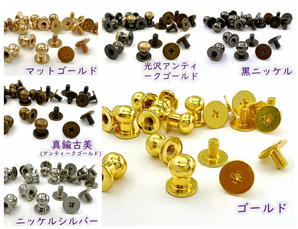「ギ6」 ネジ式 ギボシ 頭直径6mm 真鍮製 10個(組)/100個(組)入り ギボシ金具 留め具 バッグ留め 革細工 パーツ レザークラフト